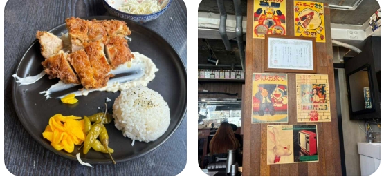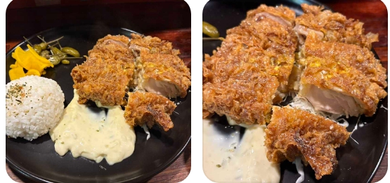- 압도적인 육즙: 일반적인 치킨가스는 퍽퍽하다는 선입견이 있지만, 이곳의 치킨가스는 특유의 노하우로 닭고기를 조리하여 튀김옷 속 촉촉한 육즙을 완벽하게 가두어 냅니다. 한 입 베어 물면 튀김의 바삭함과 동시에 부드러운 닭고기 육즙이 터져 나오는 것이 특징입니다.