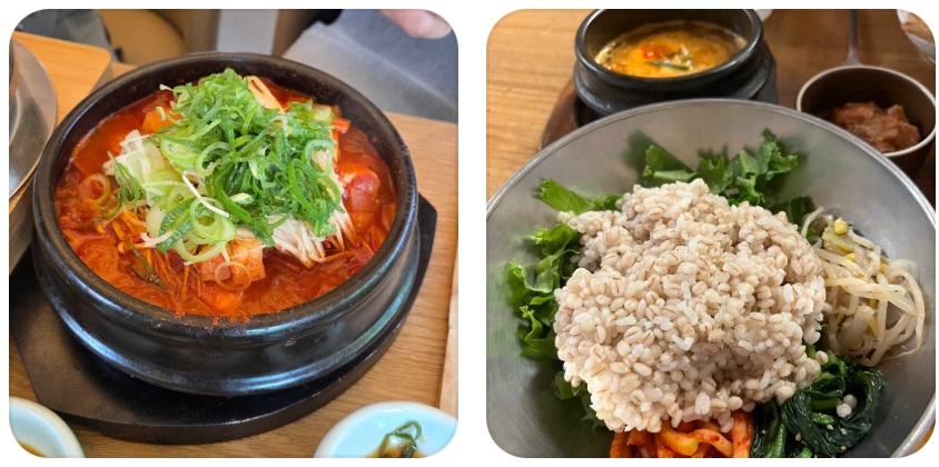 - 보리밥과 청국장: 보리밥(청국장 포함 12,000원)은 나물과 강된장을 넣어 비벼 먹는 메뉴로, 옹심이와 함께 정겨운 시골 밥상의 정취를 느낄 수 있게 합니다.